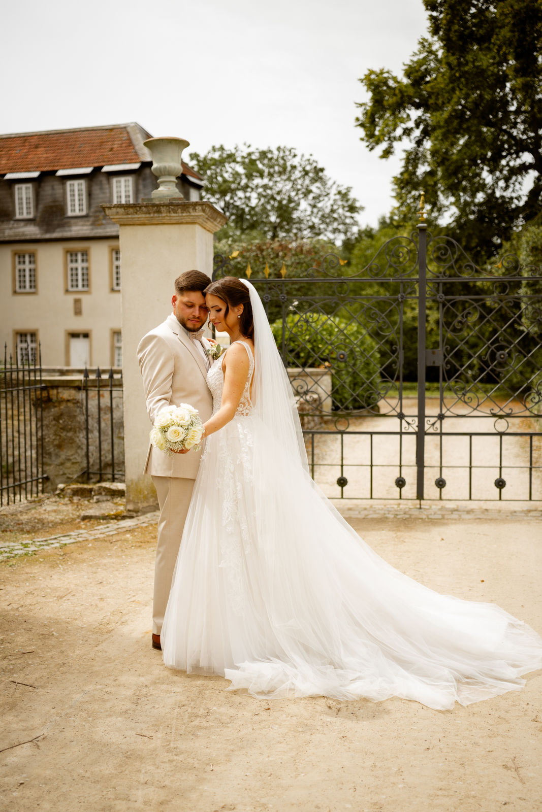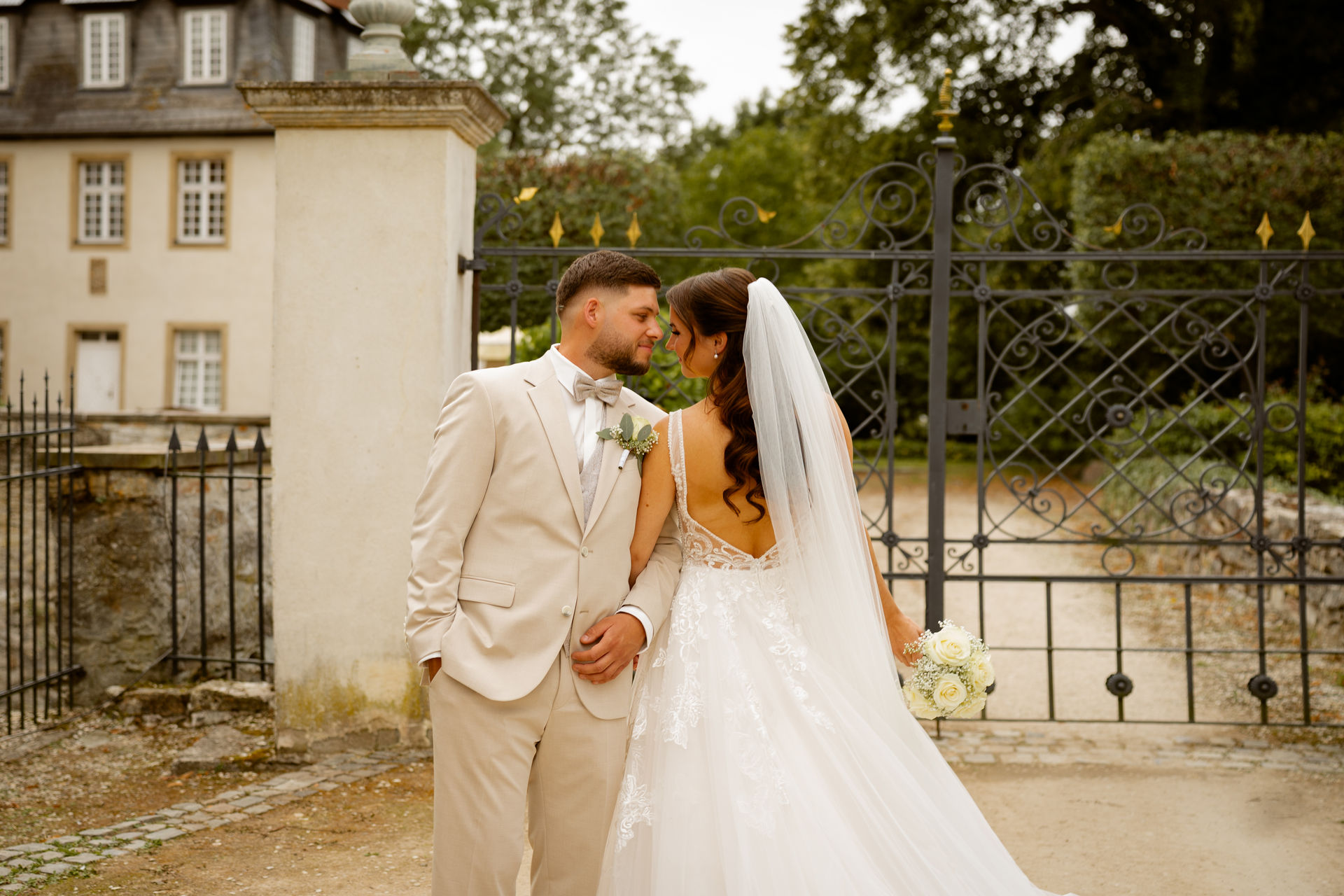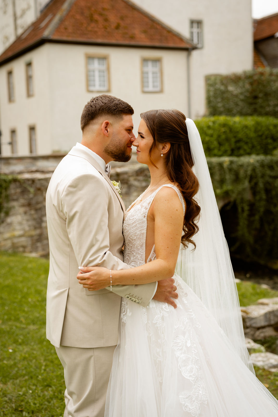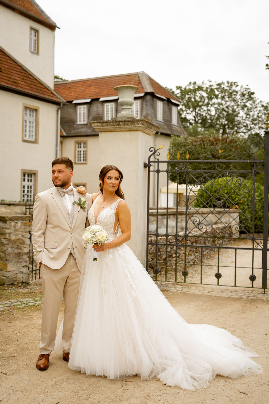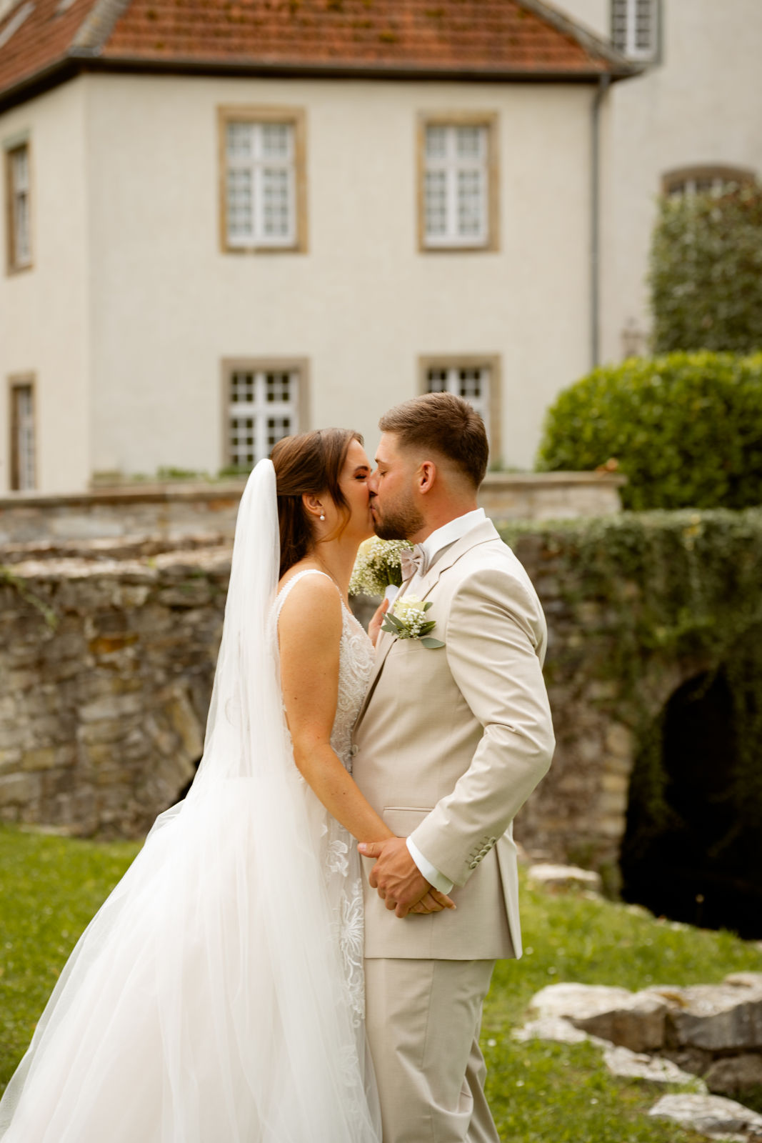 Für das Paarshooting haben wir uns die Dreckburg in Salzkotten ausgesucht. Beindruckende Fassaden, das Schmuckstück von Salzkotten. Ich lasse das Brautpaar dabei ganz natürlich agieren – ohne starre Posen, ohne Druck. Meine Kamera als stiller Beobachter.