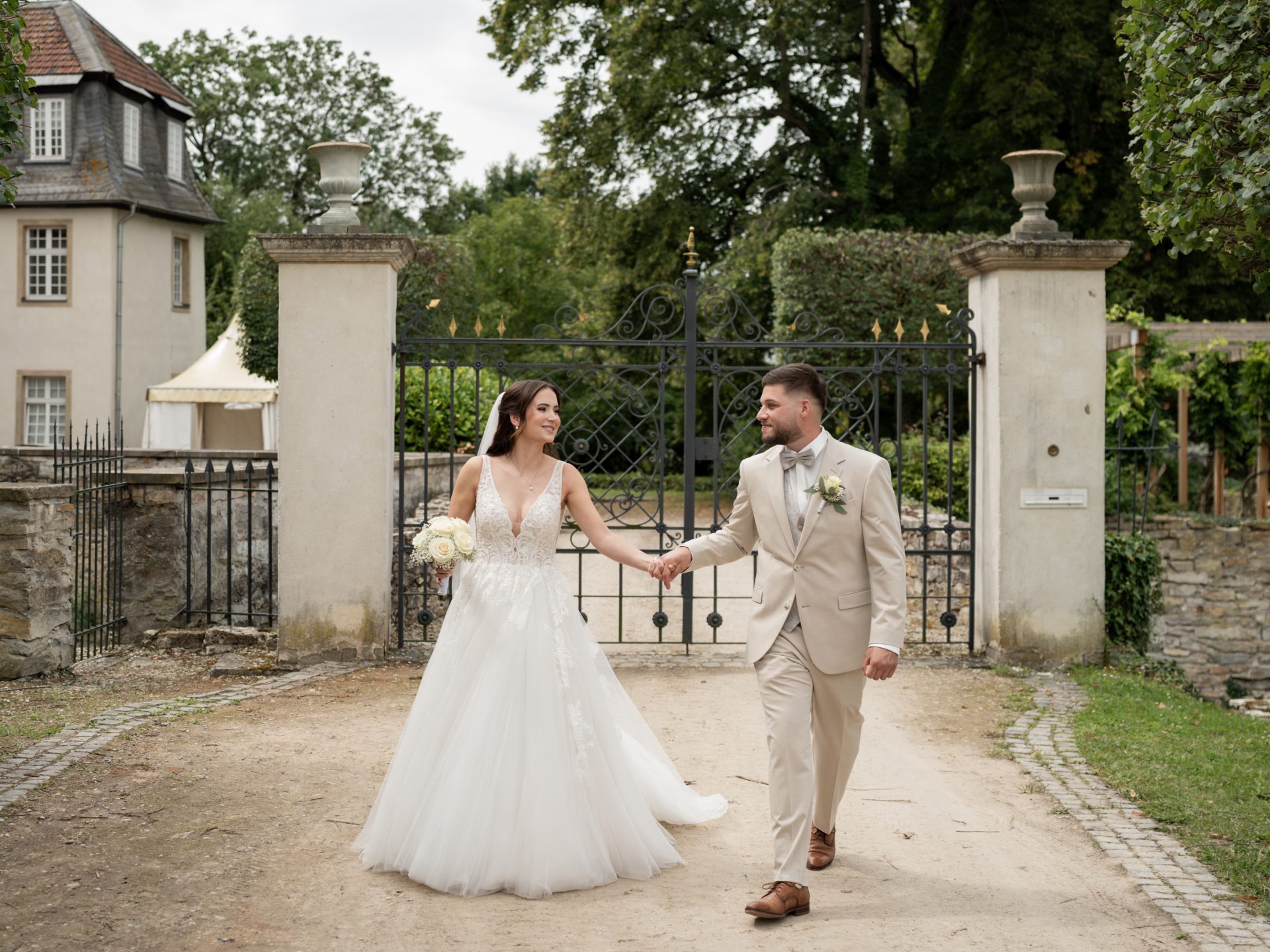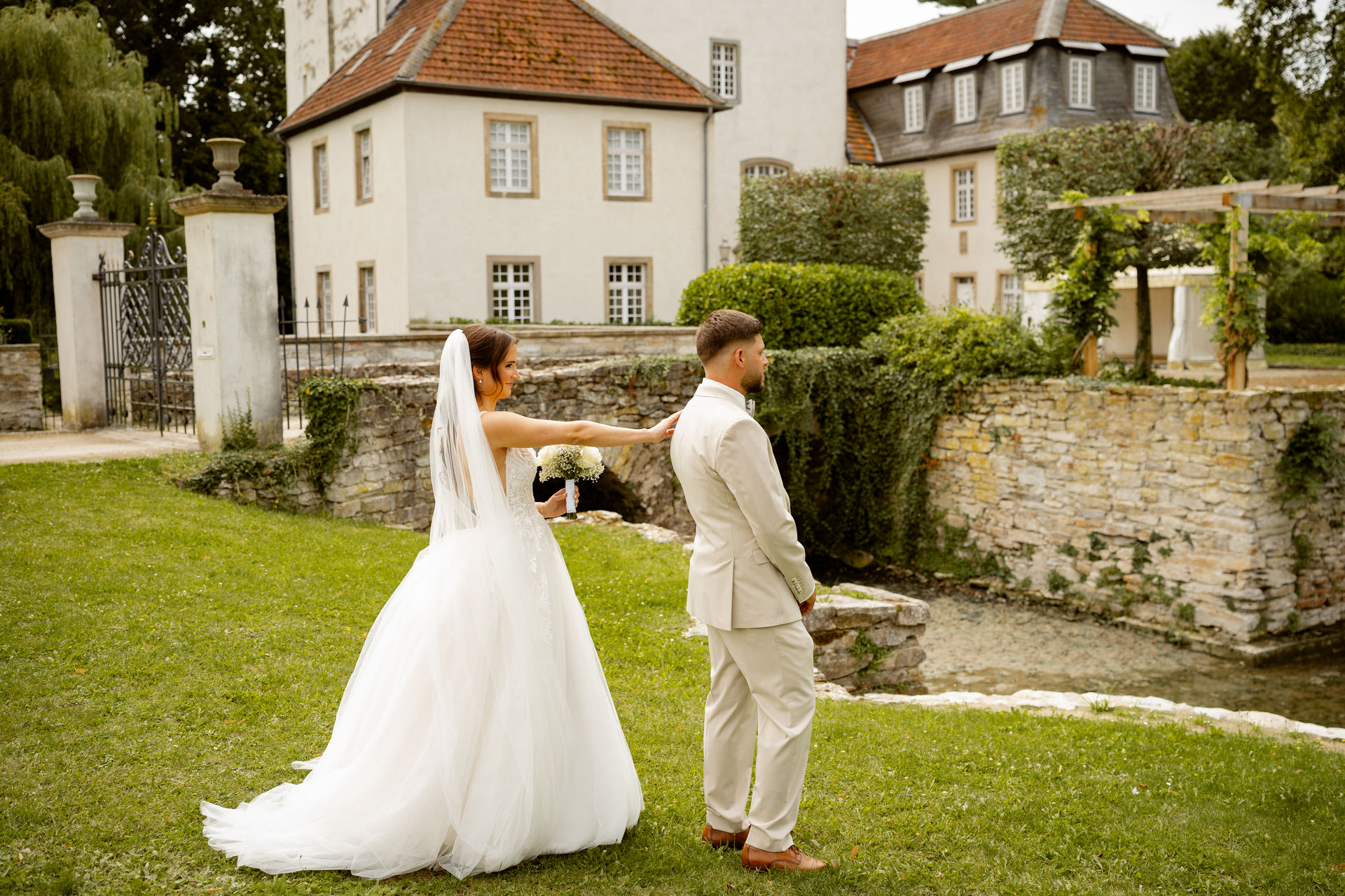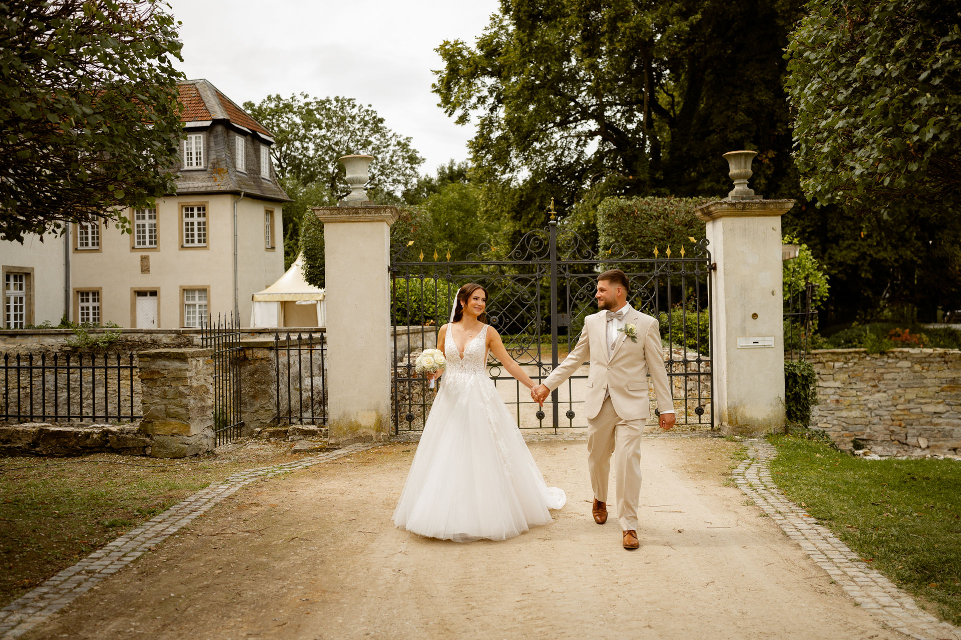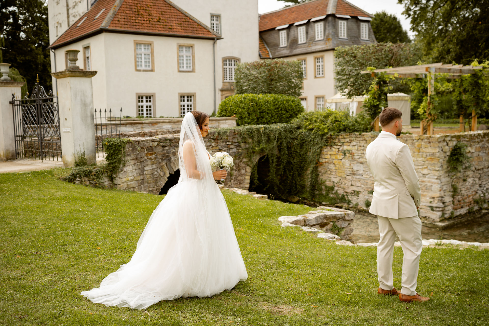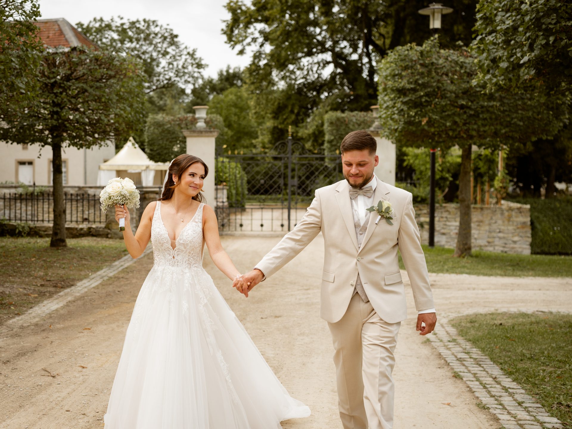 Für das Paarshooting haben wir uns die Dreckburg in Salzkotten ausgesucht. Beindruckende Fassaden, das Schmuckstück von Salzkotten. Ich lasse das Brautpaar dabei ganz natürlich agieren – ohne starre Posen, ohne Druck. Meine Kamera als stiller Beobachter.