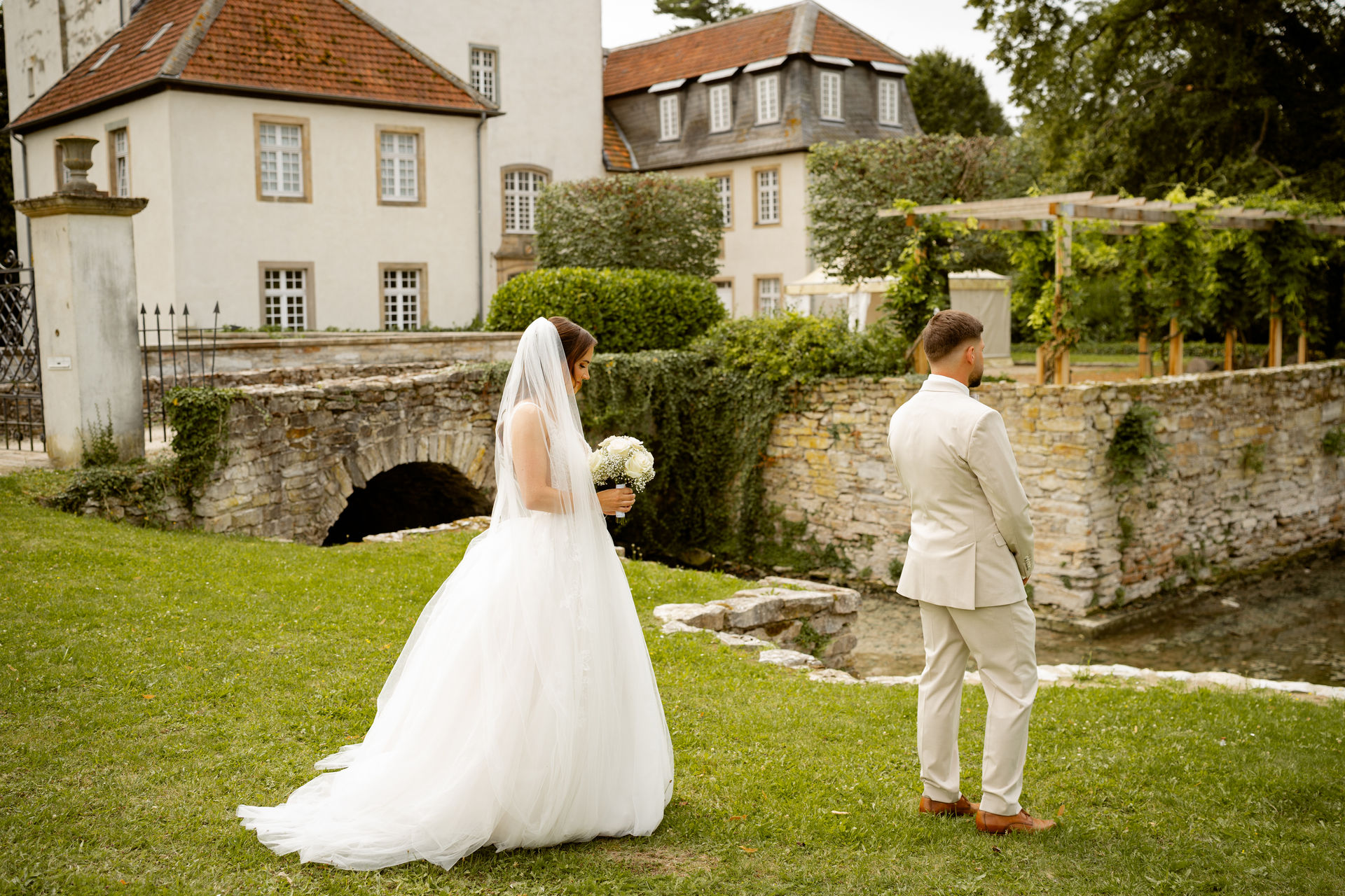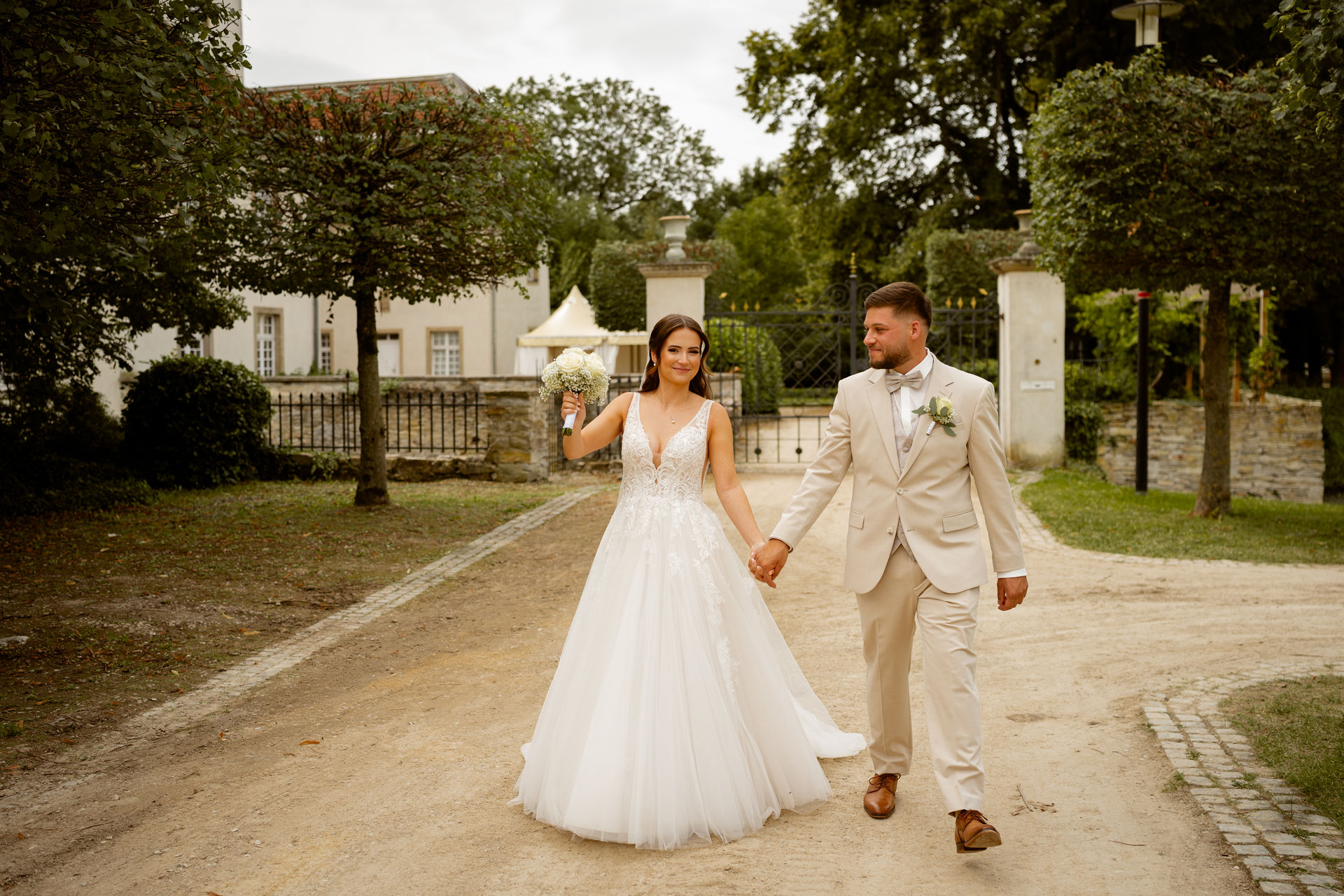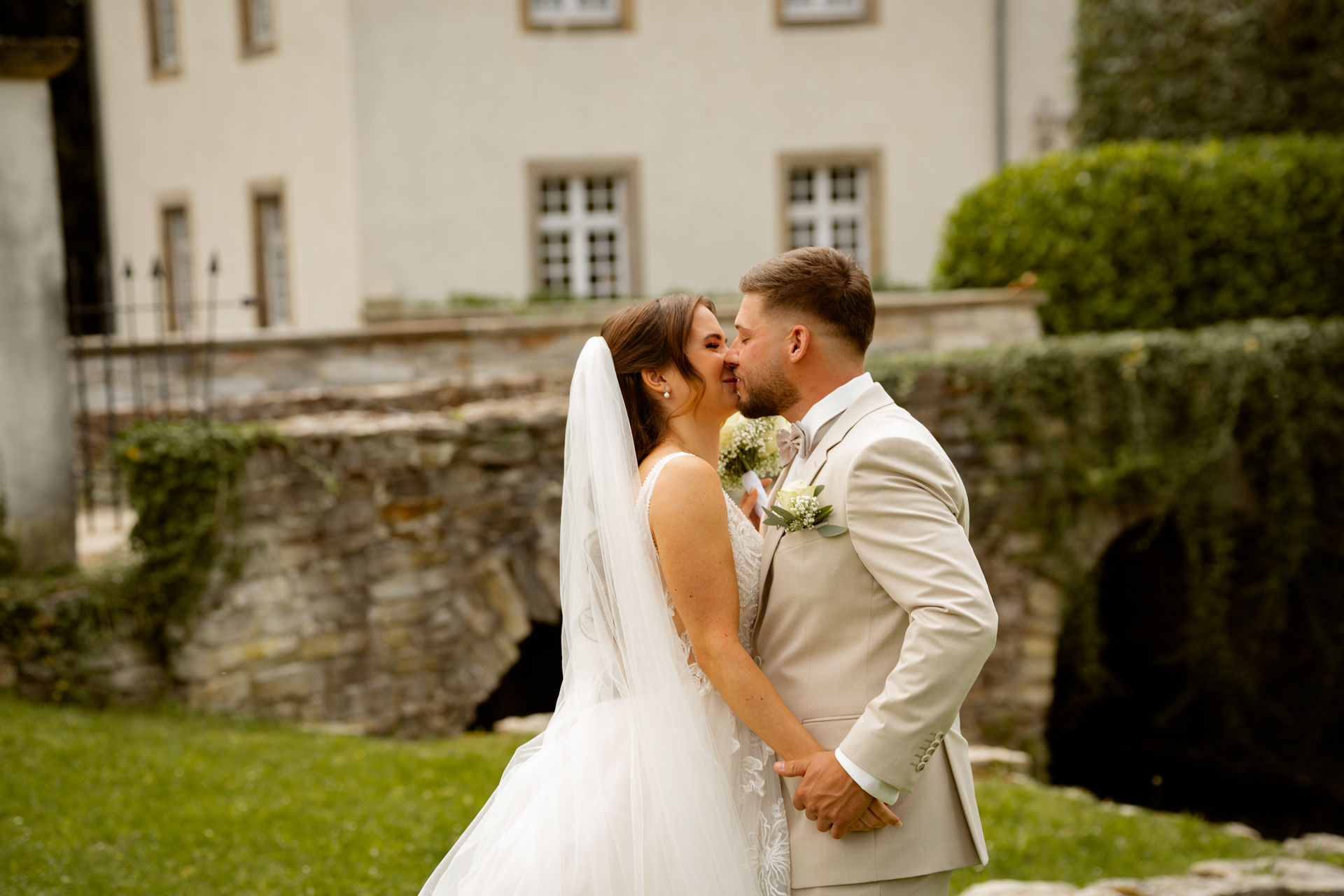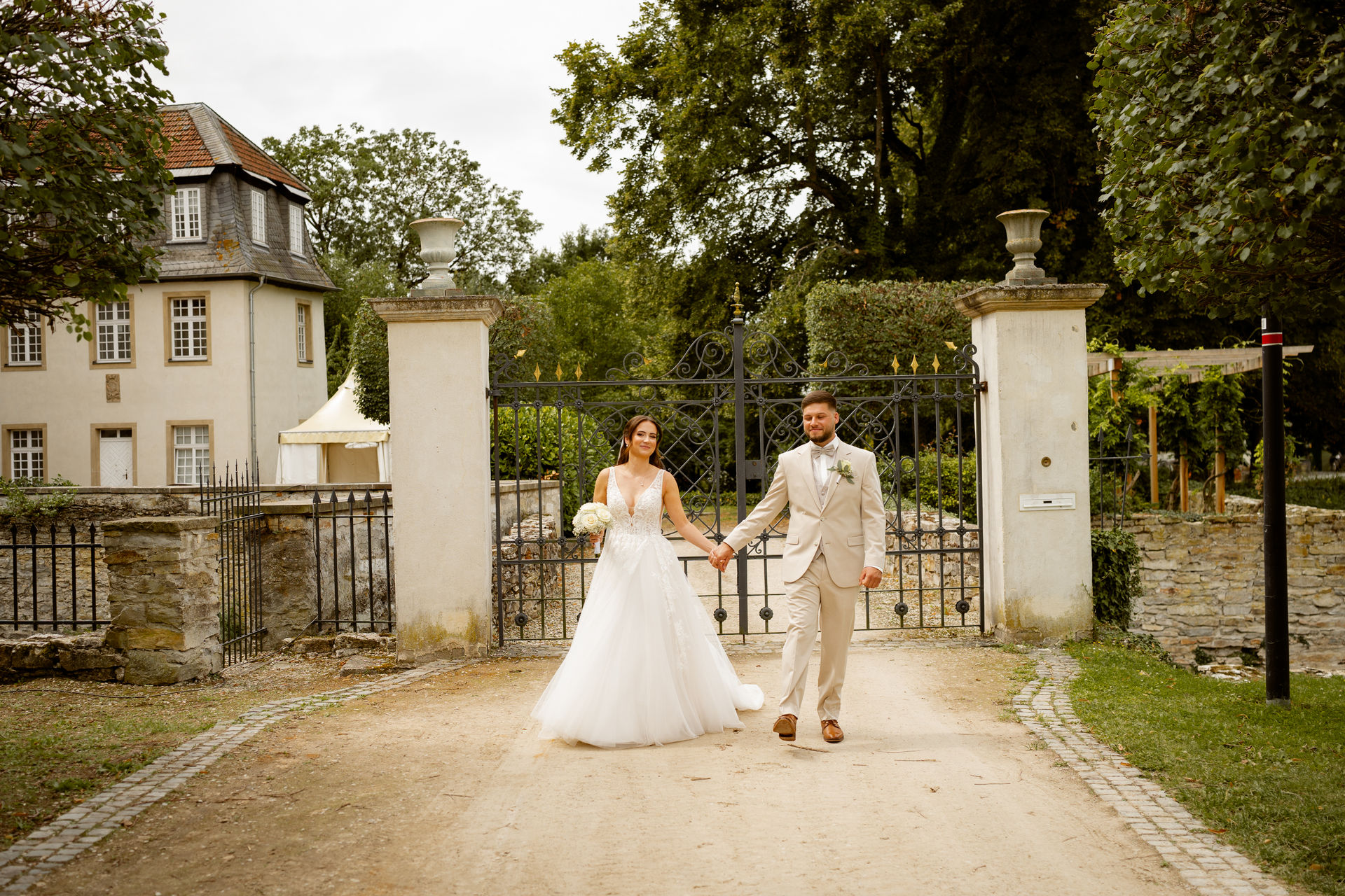 Für das Paarshooting haben wir uns die Dreckburg in Salzkotten ausgesucht. Beindruckende Fassaden, das Schmuckstück von Salzkotten. Ich lasse das Brautpaar dabei ganz natürlich agieren – ohne starre Posen, ohne Druck. Meine Kamera als stiller Beobachter.
