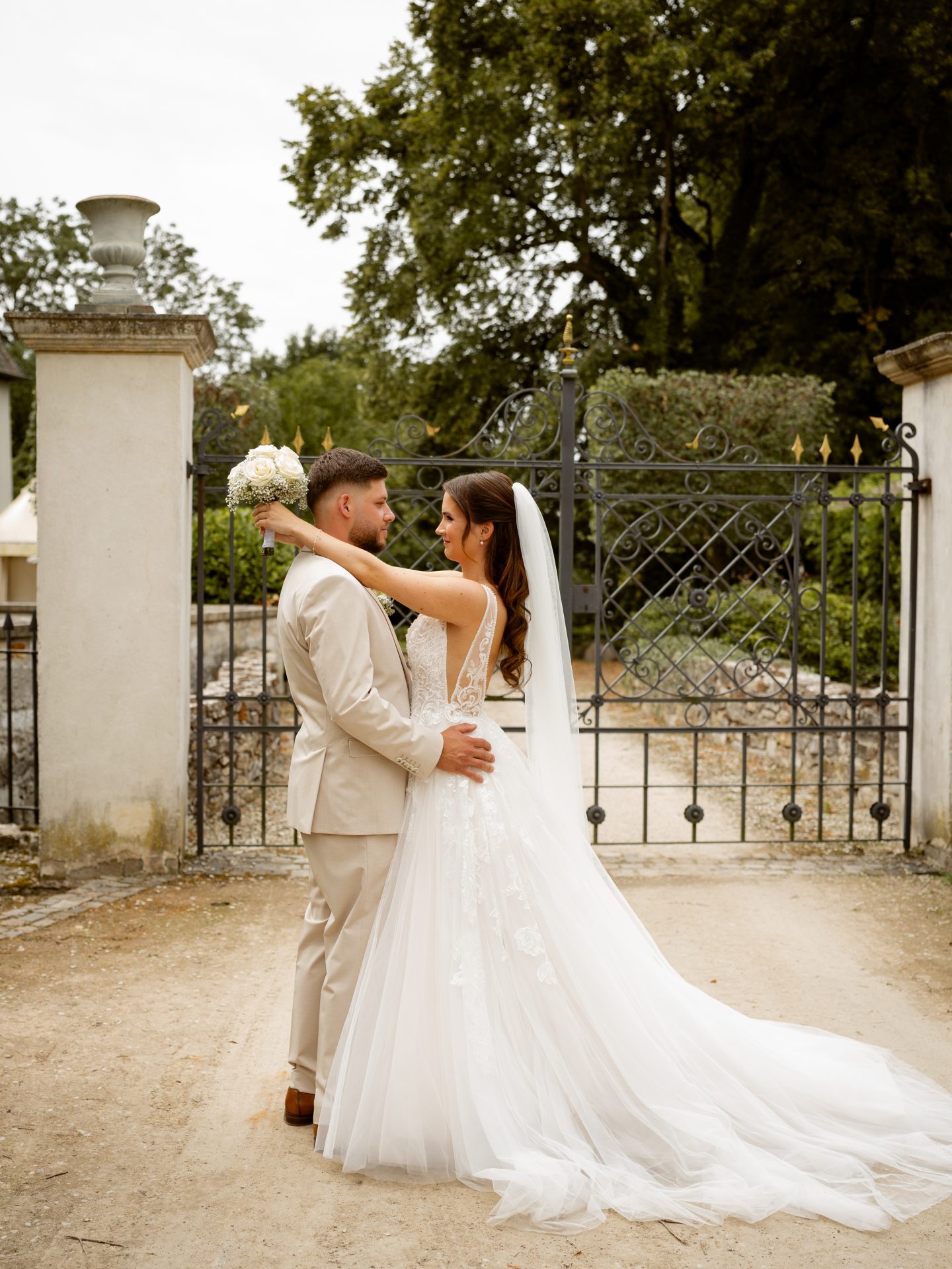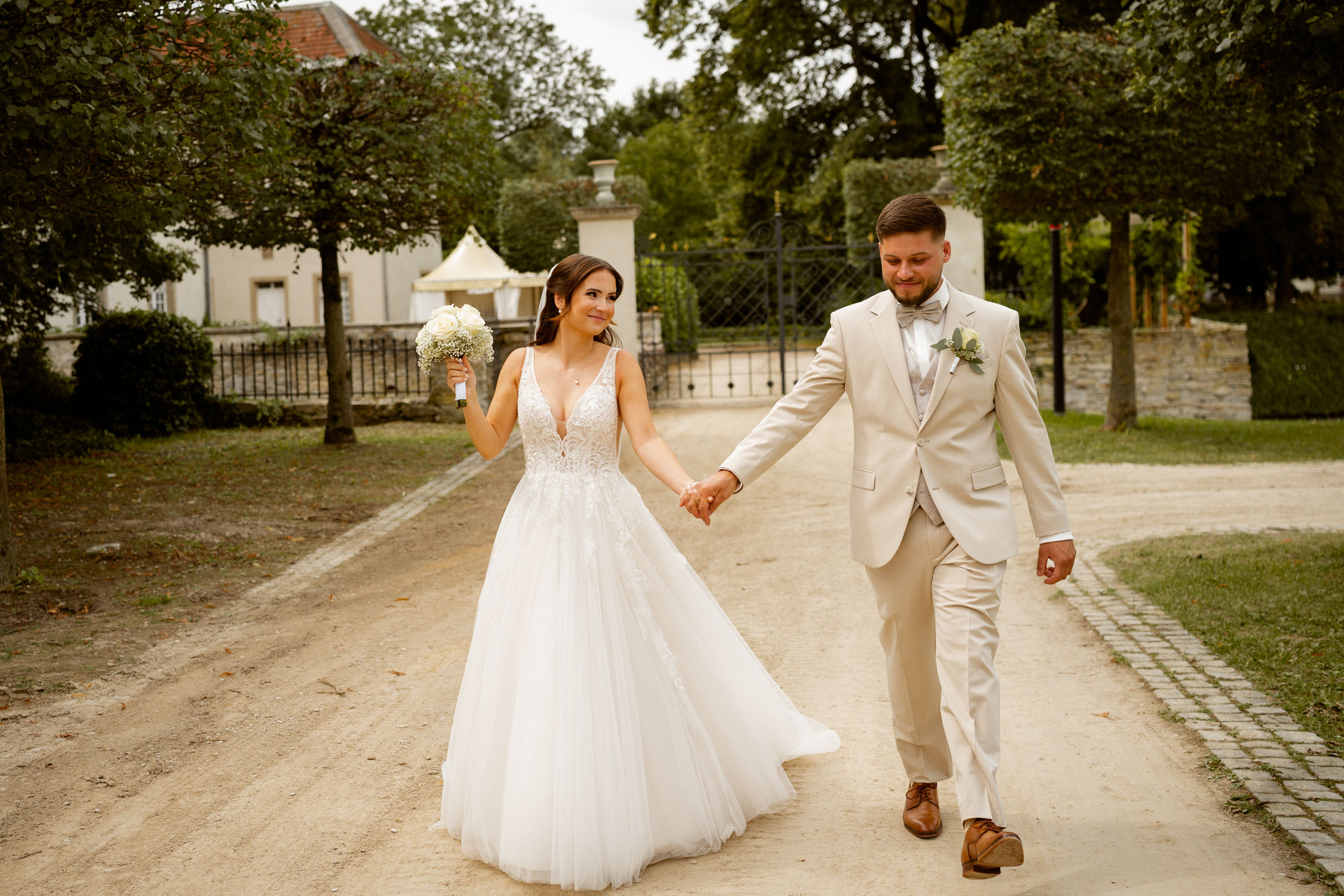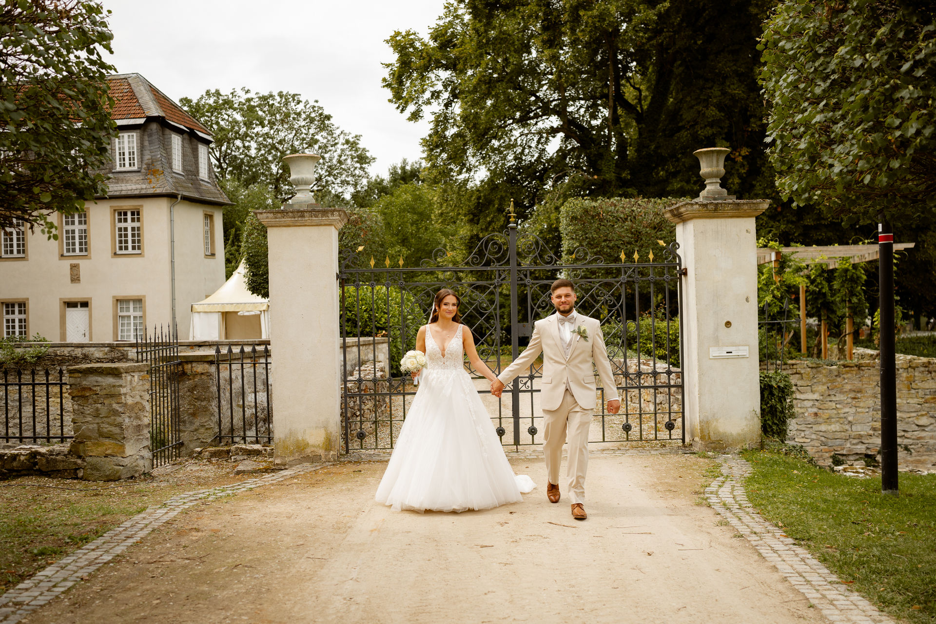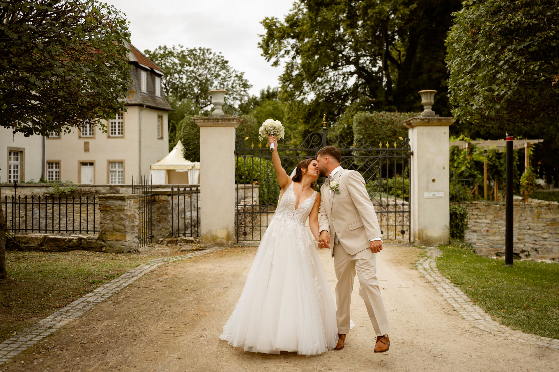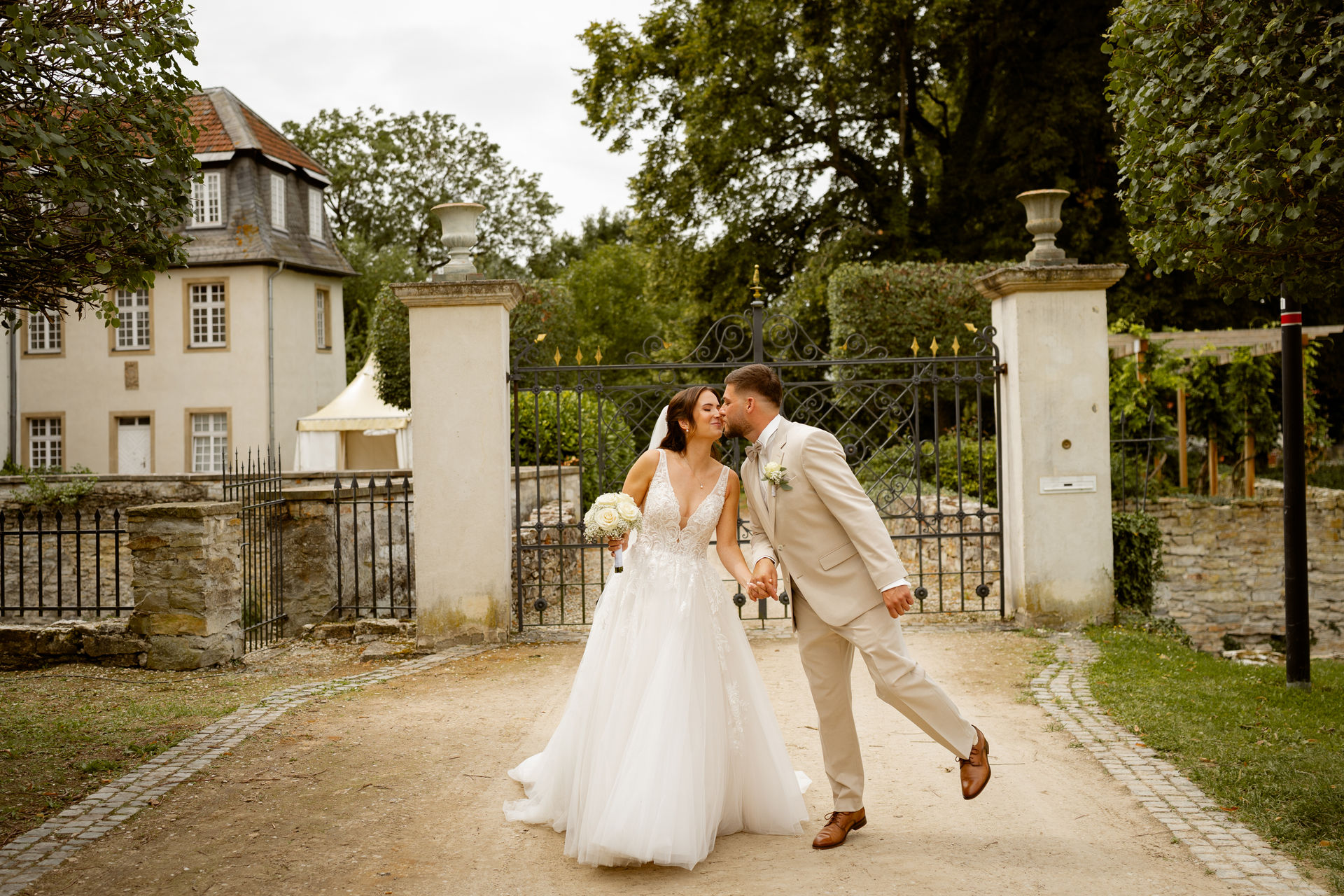 Für das Paarshooting haben wir uns die Dreckburg in Salzkotten ausgesucht. Beindruckende Fassaden, das Schmuckstück von Salzkotten. Ich lasse das Brautpaar dabei ganz natürlich agieren – ohne starre Posen, ohne Druck. Meine Kamera als stiller Beobachter.