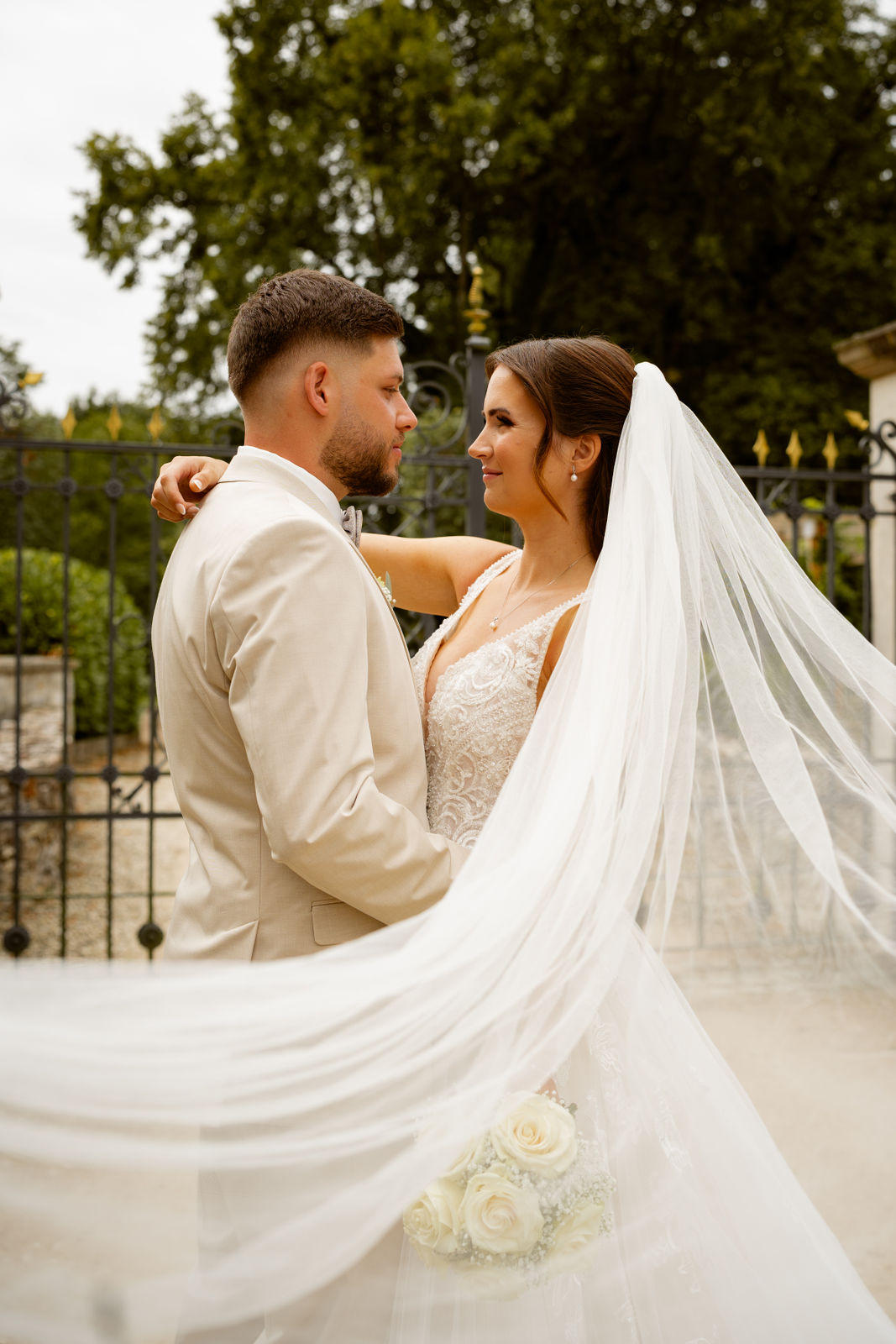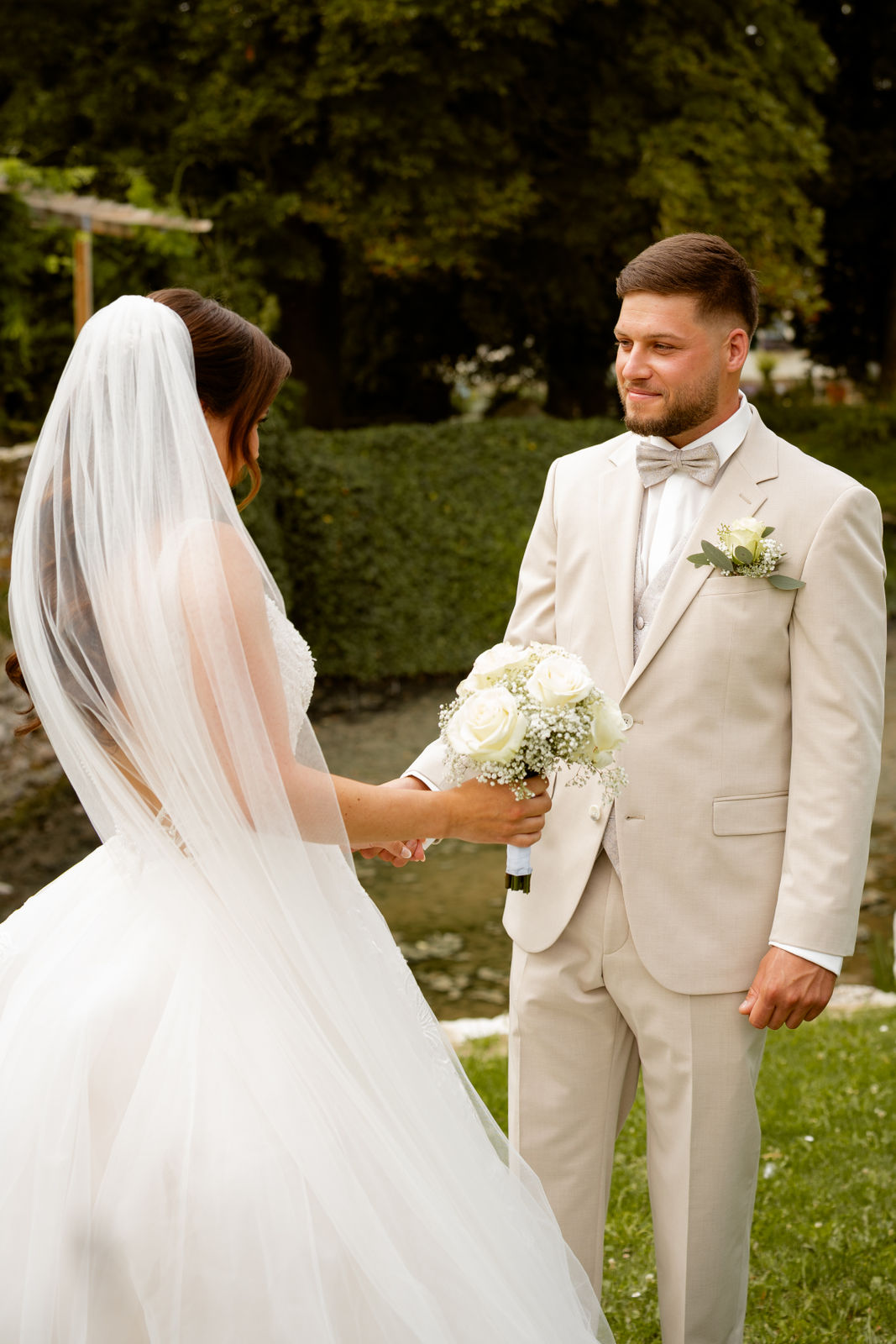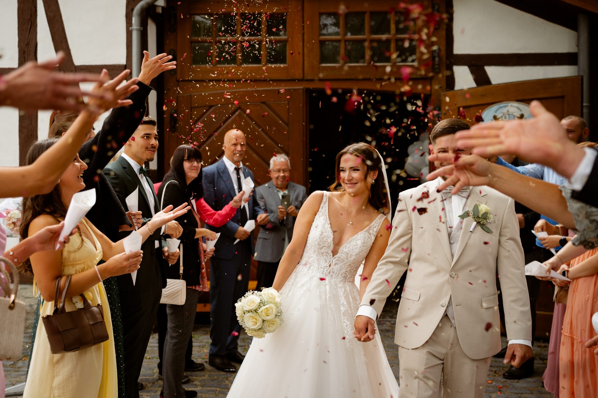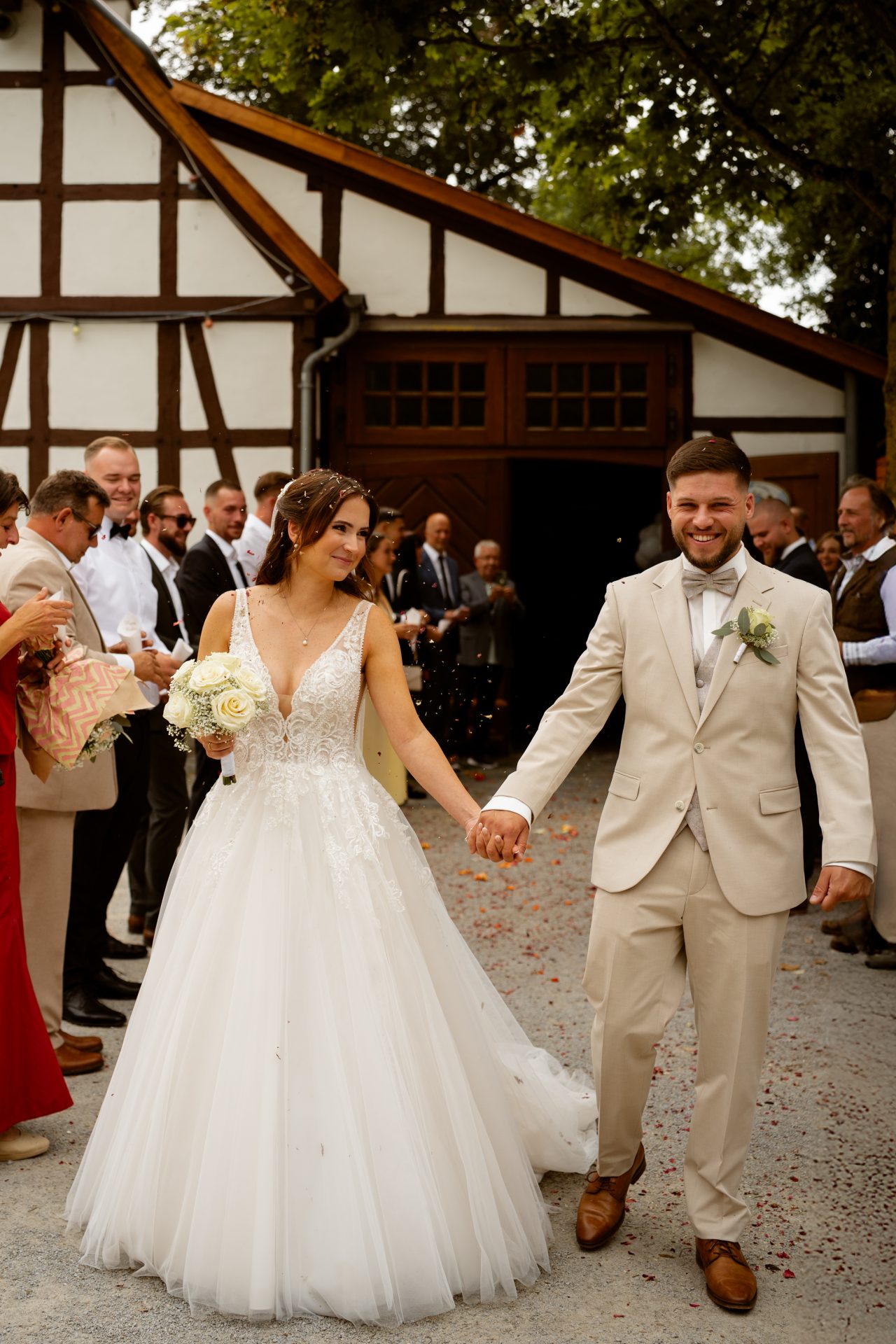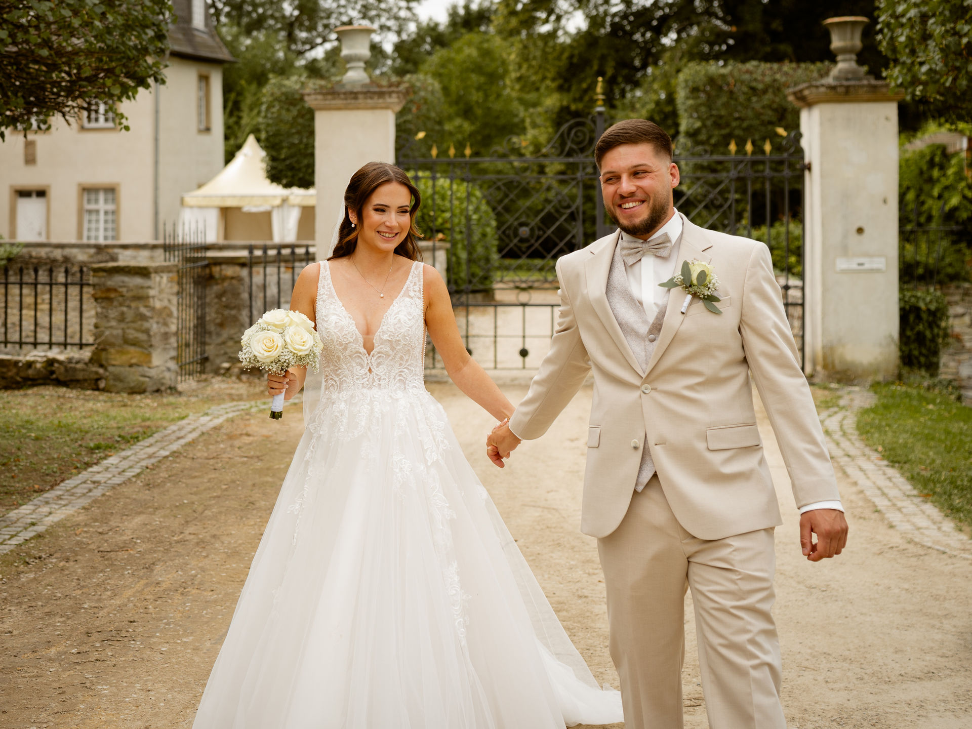 Für das Paarshooting haben wir uns die Dreckburg in Salzkotten ausgesucht. Beindruckende Fassaden, das Schmuckstück von Salzkotten. Ich lasse das Brautpaar dabei ganz natürlich agieren – ohne starre Posen, ohne Druck. Meine Kamera als stiller Beobachter.