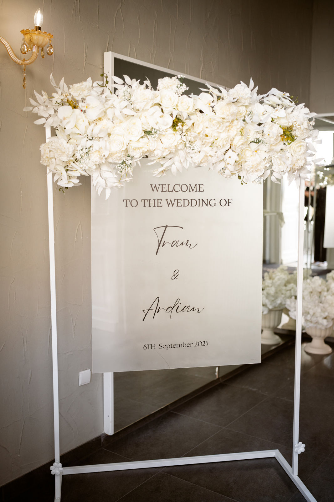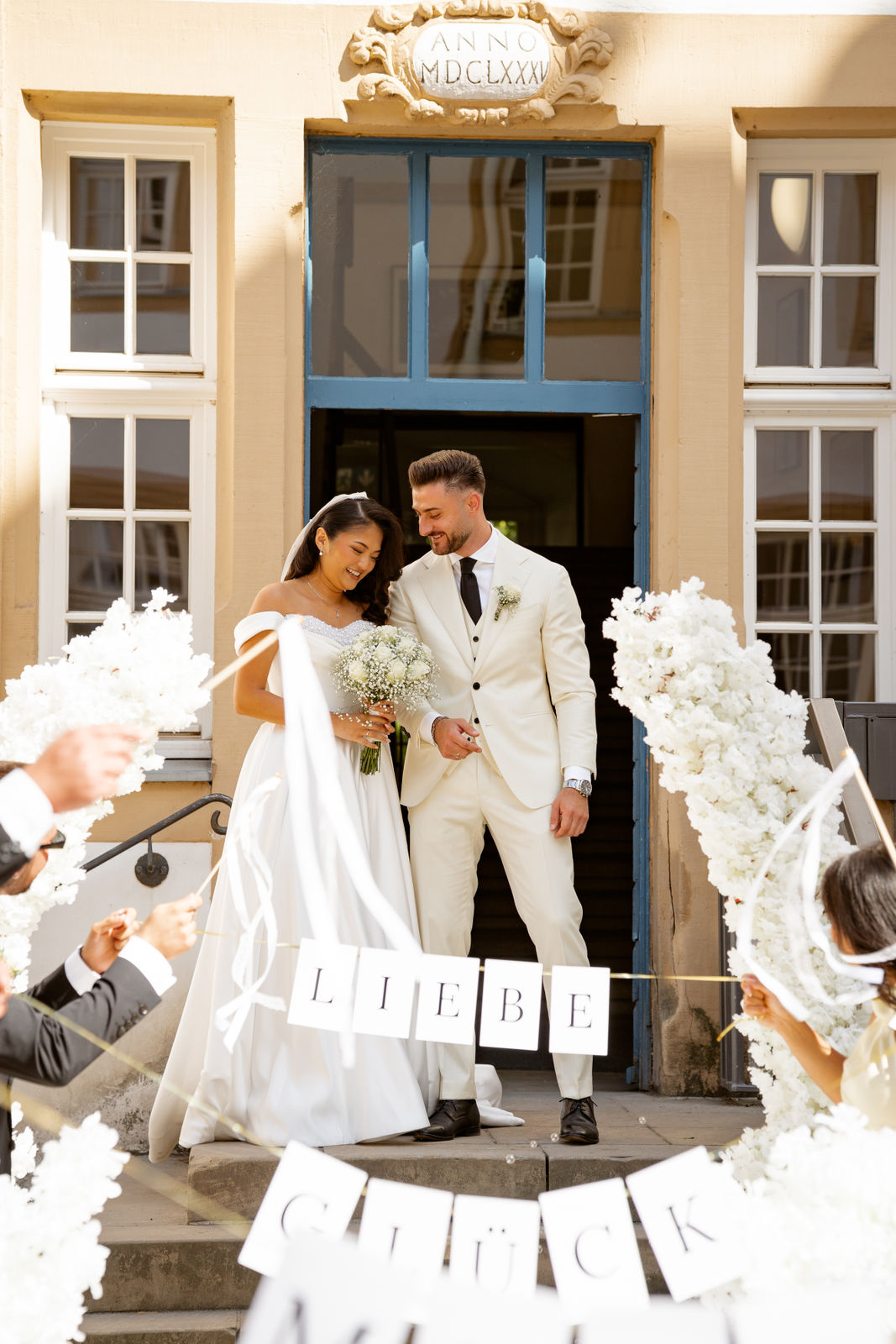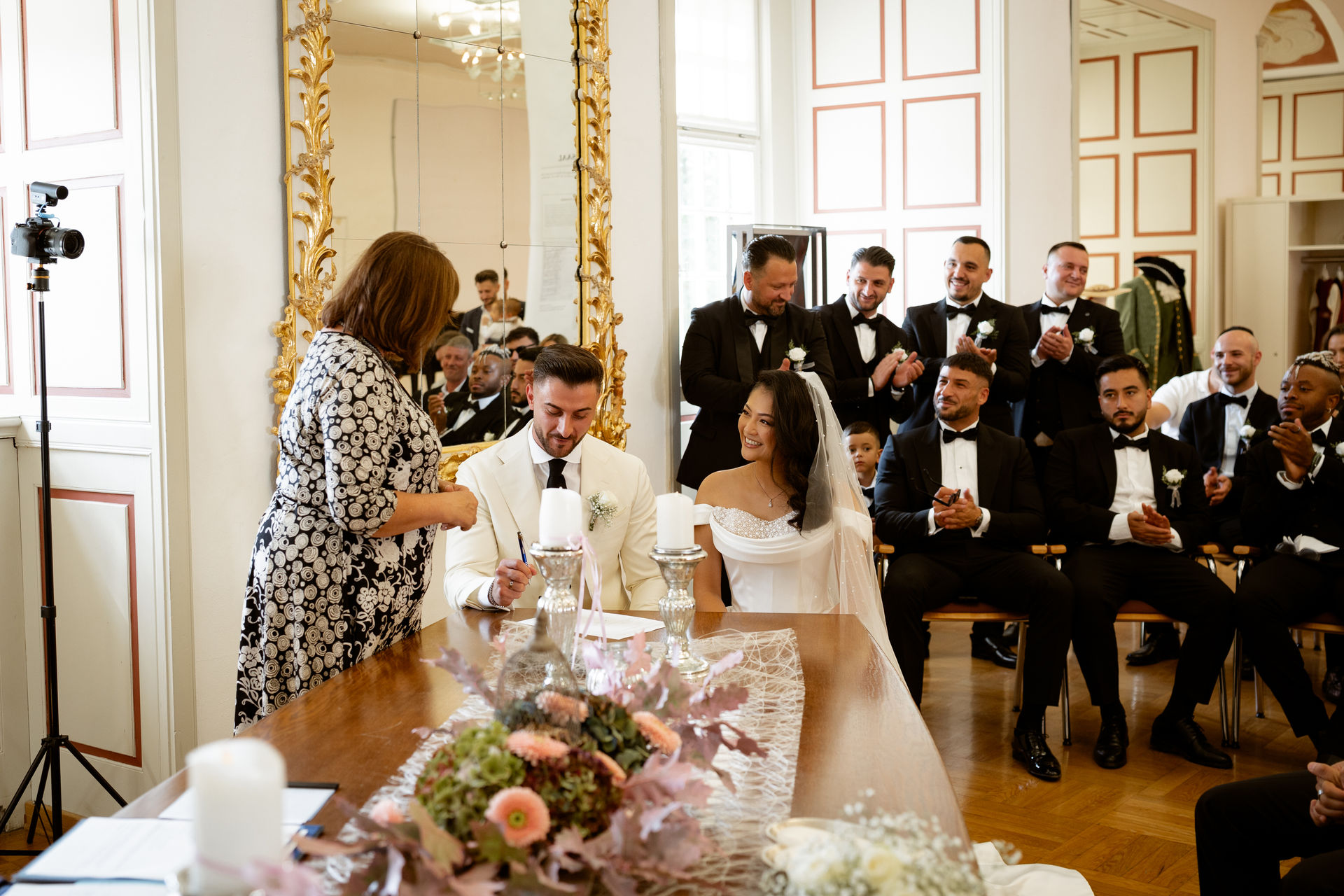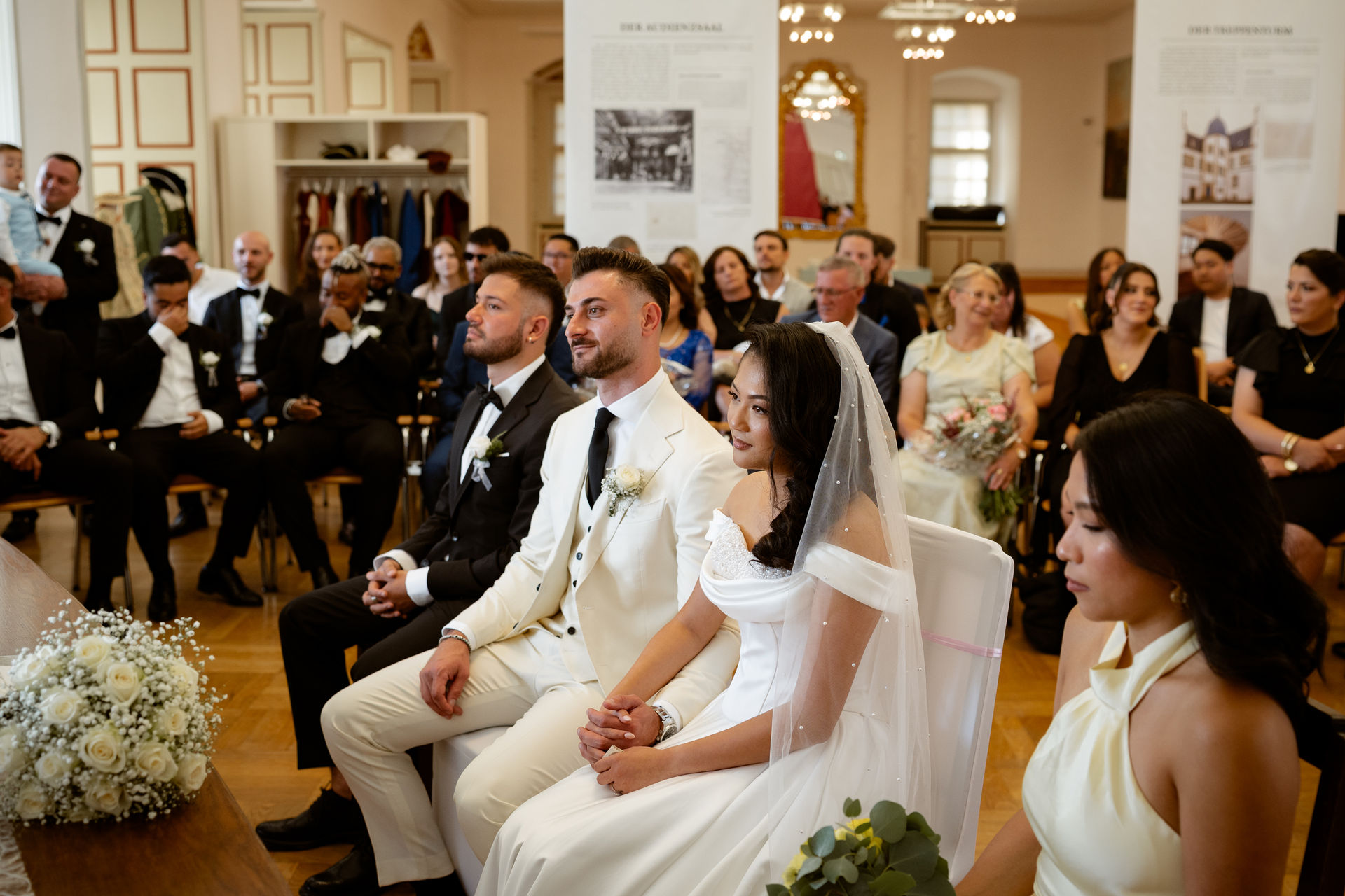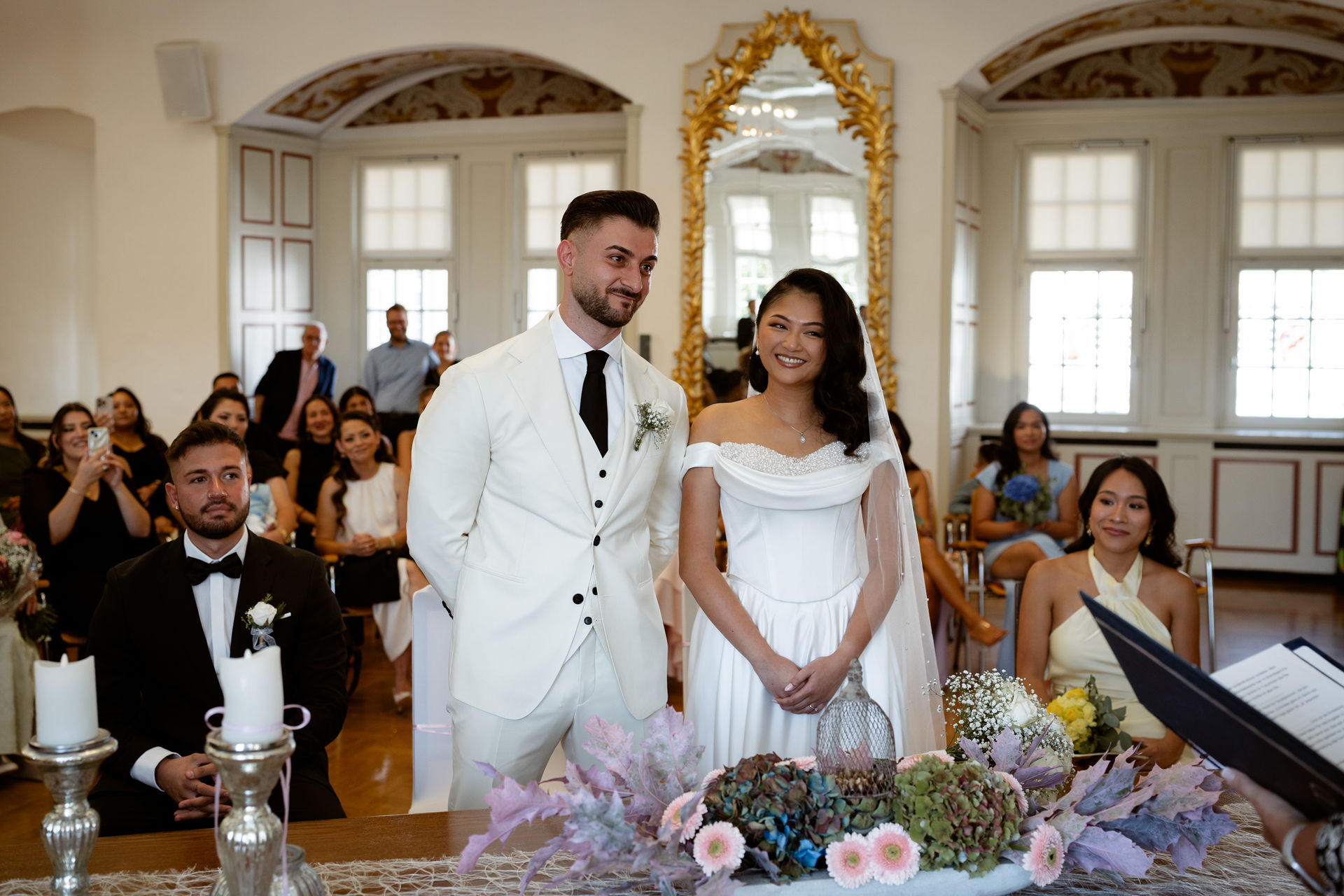 Die standesamtliche Trauung von Tram und Ardian fand vor dem wunderschönen Spiegelsaal statt.